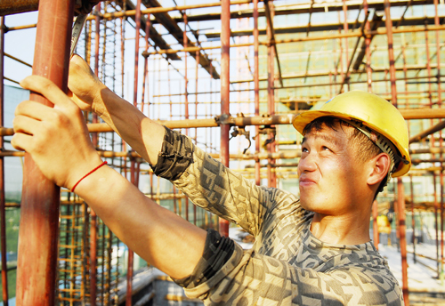 连日的高温炙烤,让许多人对户外活动望而却步,然而,建筑工人们始终坚守在钢筋丛林中,他们挥汗如雨,兢兢业业,用辛勤筑成高楼大厦。图为8月15日,许昌市市直公用事业单位综合服务中心工程项目现场,工人正在施工。
